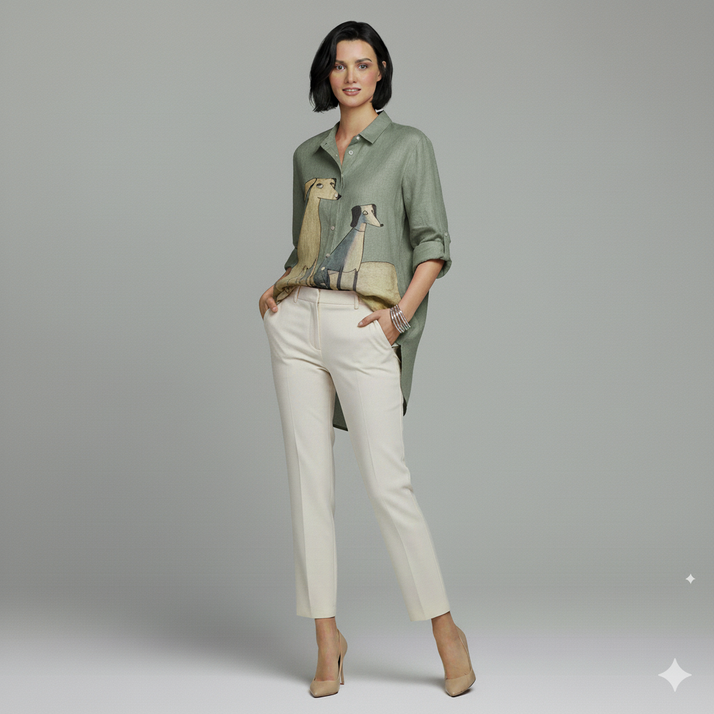 • Chic Style: Features a vibrant dog motif that adds a fun flair to any outfit.